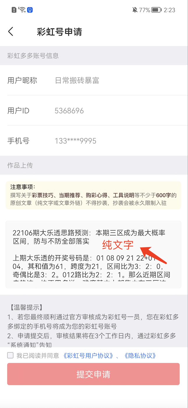 2.【纯文字版】:600字原创,有标题,有内容